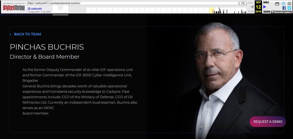 One of the directors of Carbyne is Nicole Junkermann. The chairman of the board of directors is Ehud Barak, the 10th Prime Minister of Israel, the 14th Chief of Staff of the Israel Defense Forces, former Minister of Defense and former Head of Military Intelligence for Israel. Ehud Barak has had a long history as one of the more public faces of Israeli covert operations. Before he was Prime Minister, Ehud Barak was a big name in the IDF. Through the 1970s, he led many operations, including famously disguising himself as a woman to kill members of the PLO (Palestinian Liberation Organisation). Ehud Barak has already been linked with Epstein, and Benjamin Netanyahu has helped to highlight those links for his own political gain.