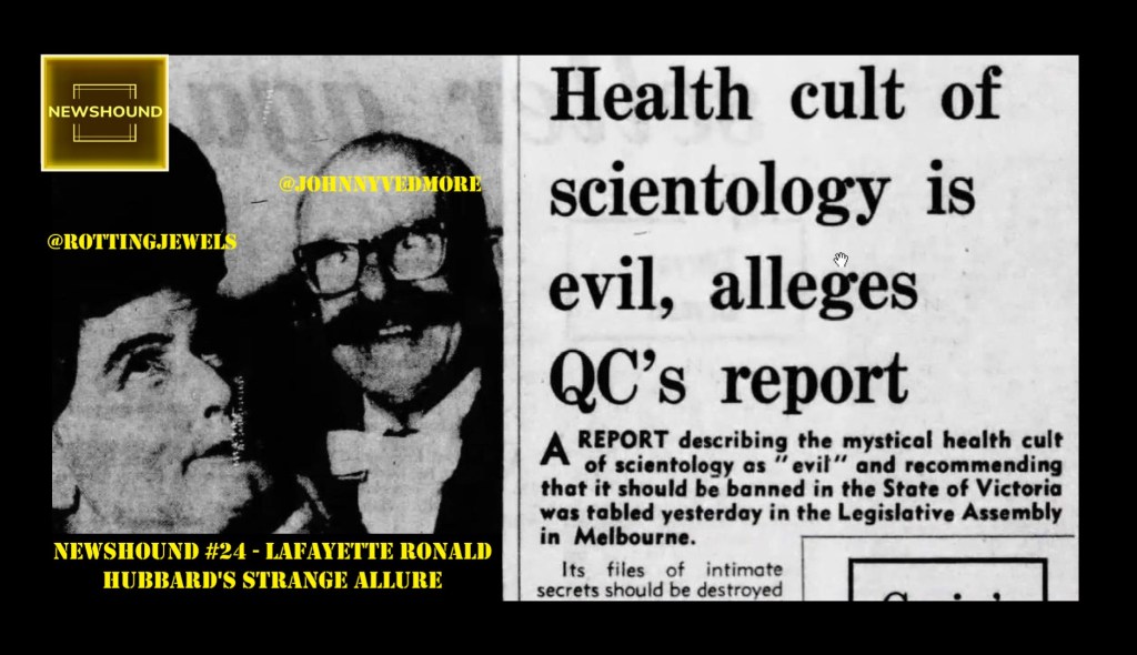 In this edition of NEWSHOUND, Dana and Johnny go through some of the newspaper archives of the past in search of the real Lafayette Ronald Hubbard, the infamous founder of Scientology. This episode covers 1946 to 1969 and contains some fantastic articles and evidence, including the marvelous bucket carrying threat to Scientology known as Mrs Chancer.
