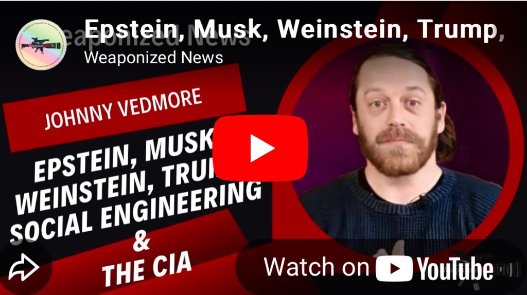 Sam Cheney of Weaponised News talked to @johnnyvedmore about Epstein, Musk, Trump, Weinstein, The CIA & the big grey Globalist intelligence blob.